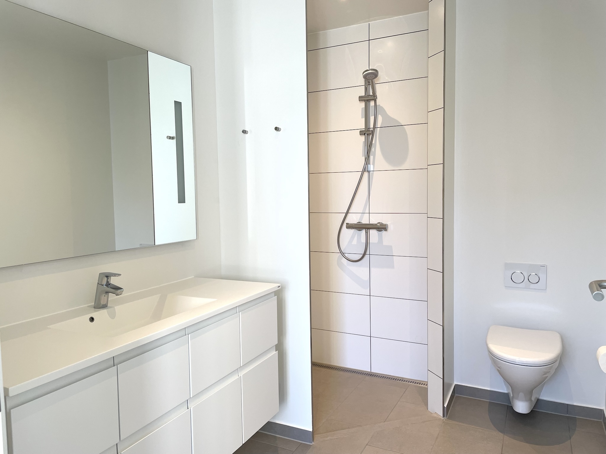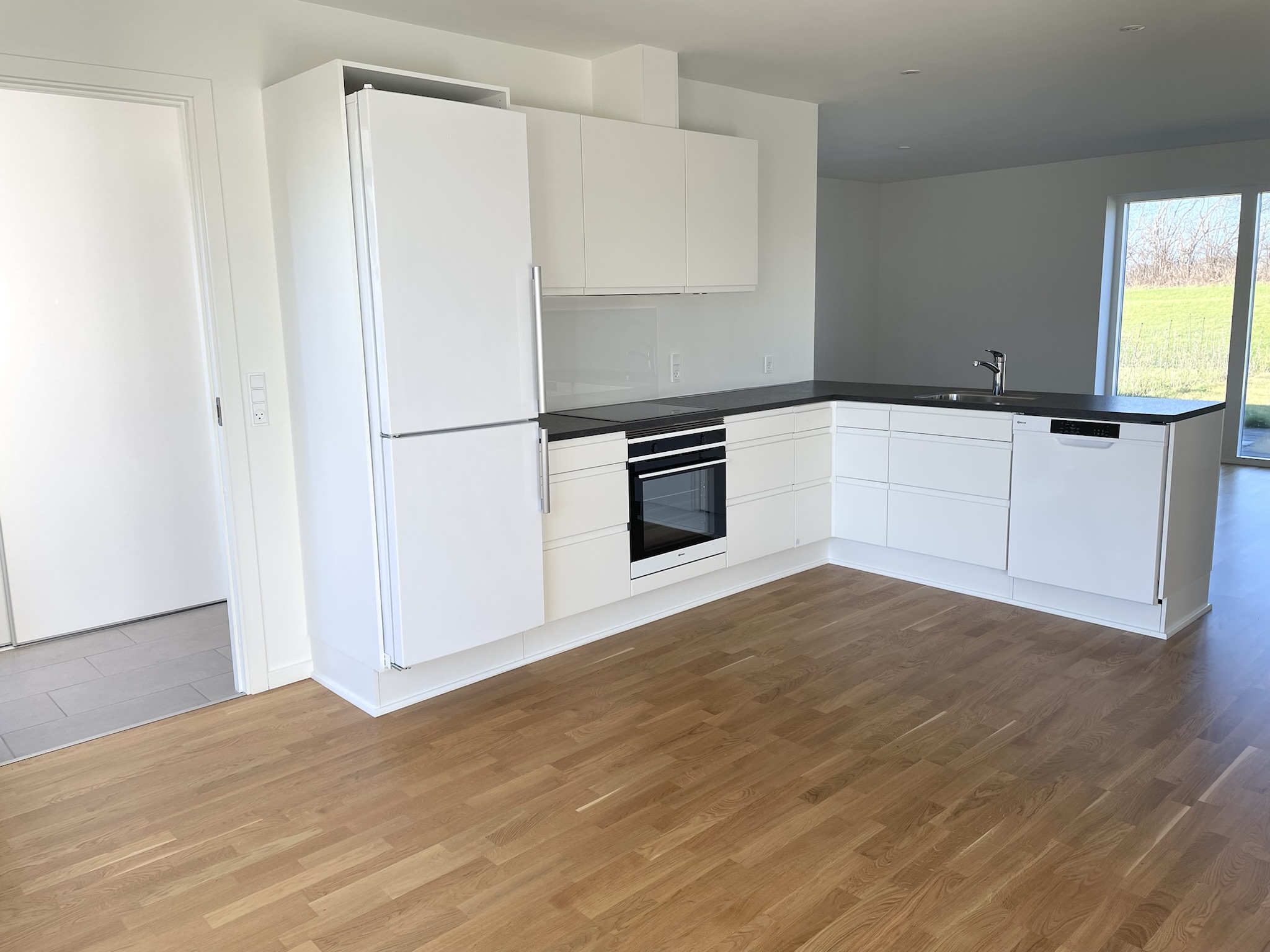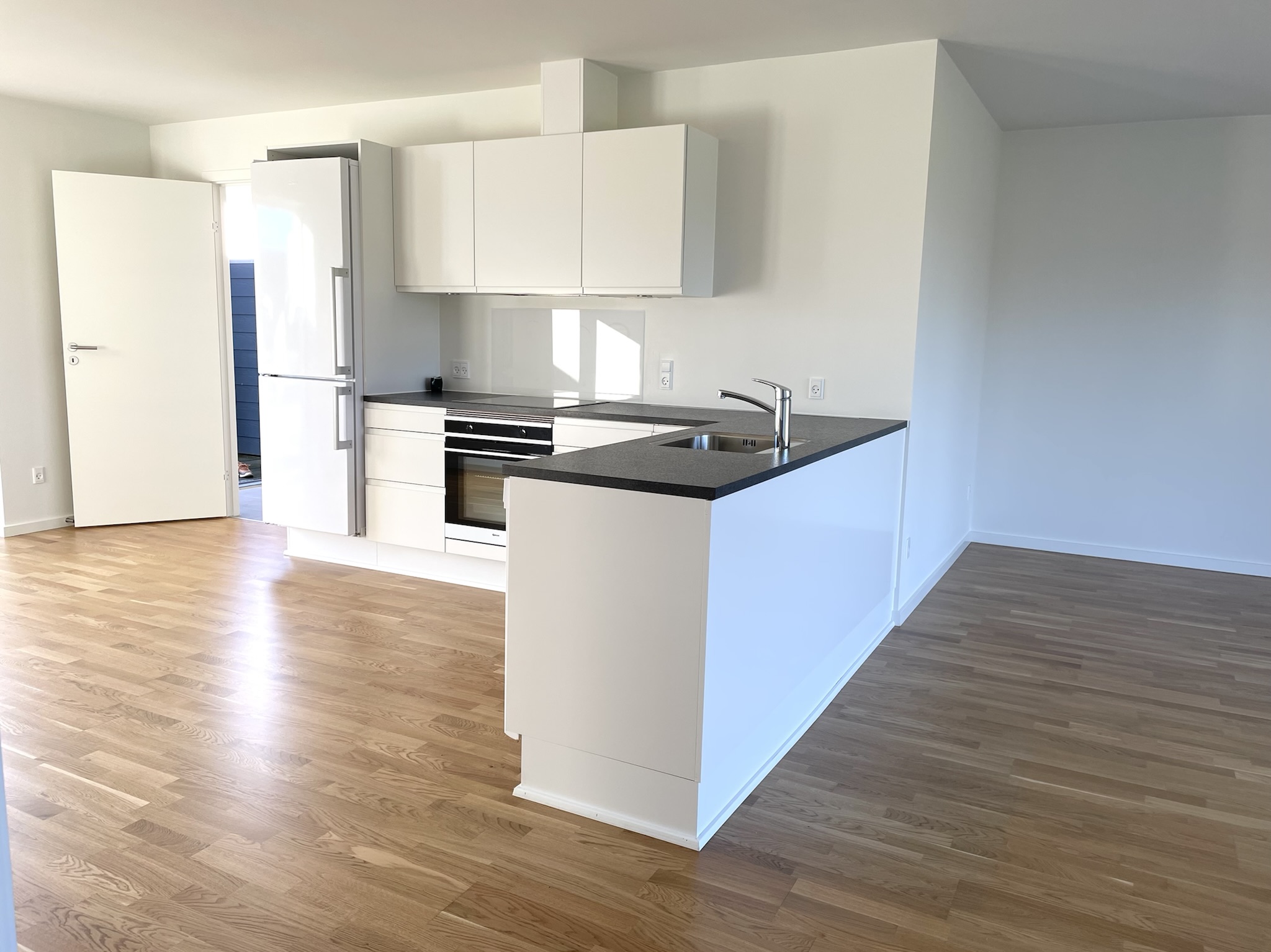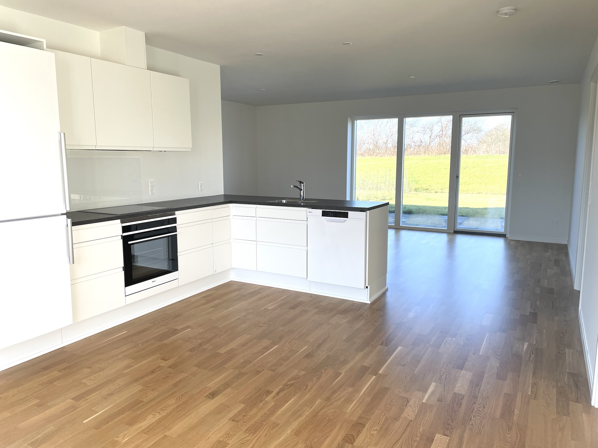 Alle rækkehusene har trægulve, hvidt HTH-køkken samt skur, indkørsel og egen haven med græs og terrasse.
